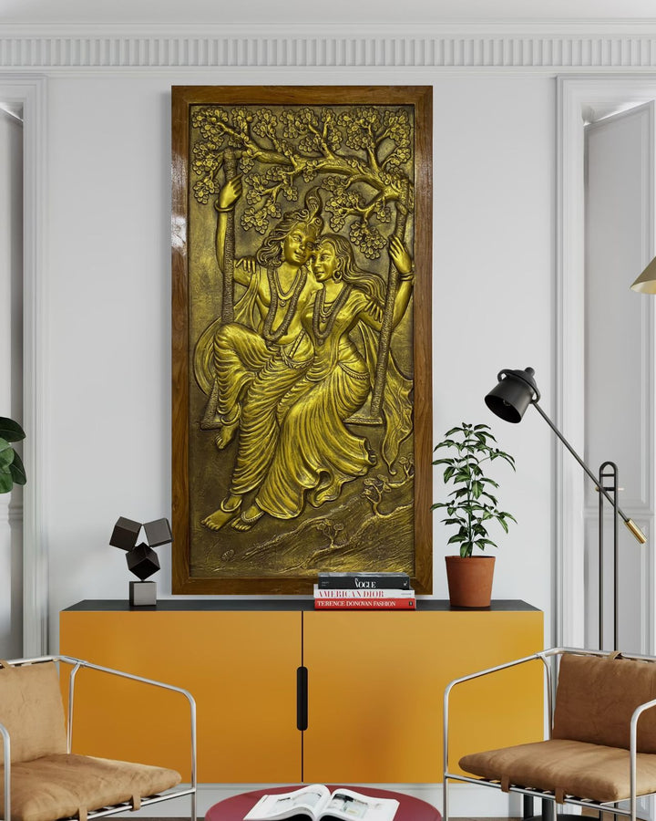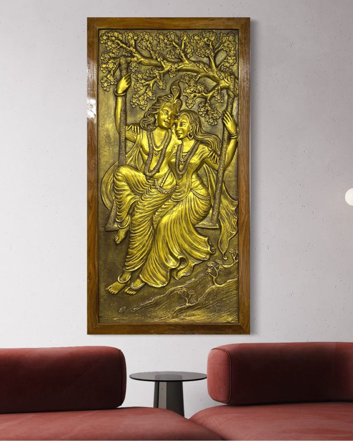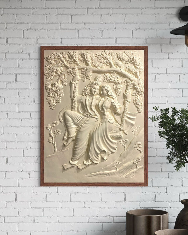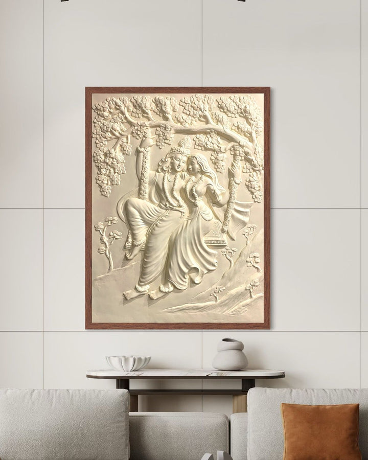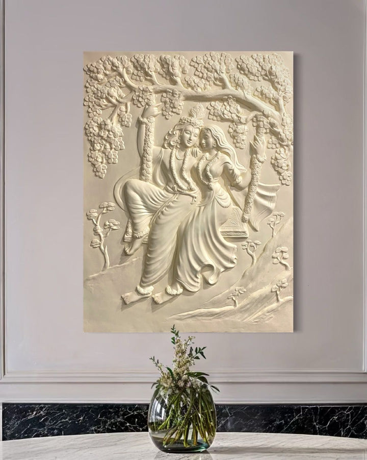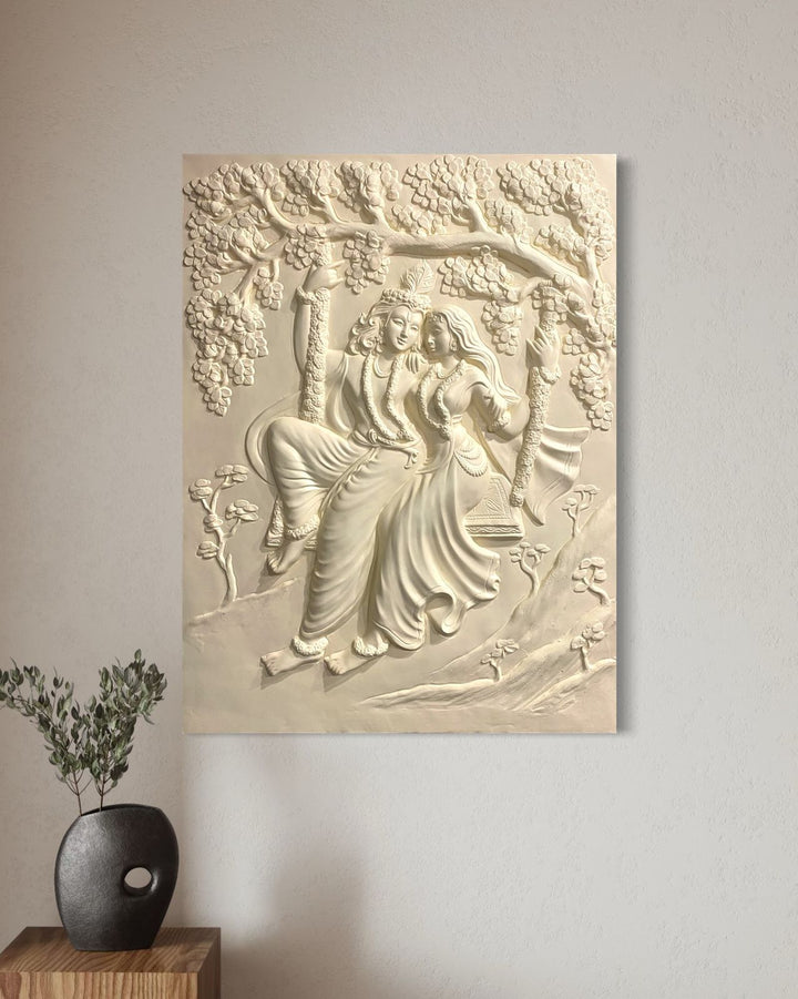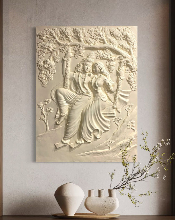 ♥ HIGH-QUALITY RADHA KRISHNA LOVE RELIEF MURAL WALL ART FOR DECORATION